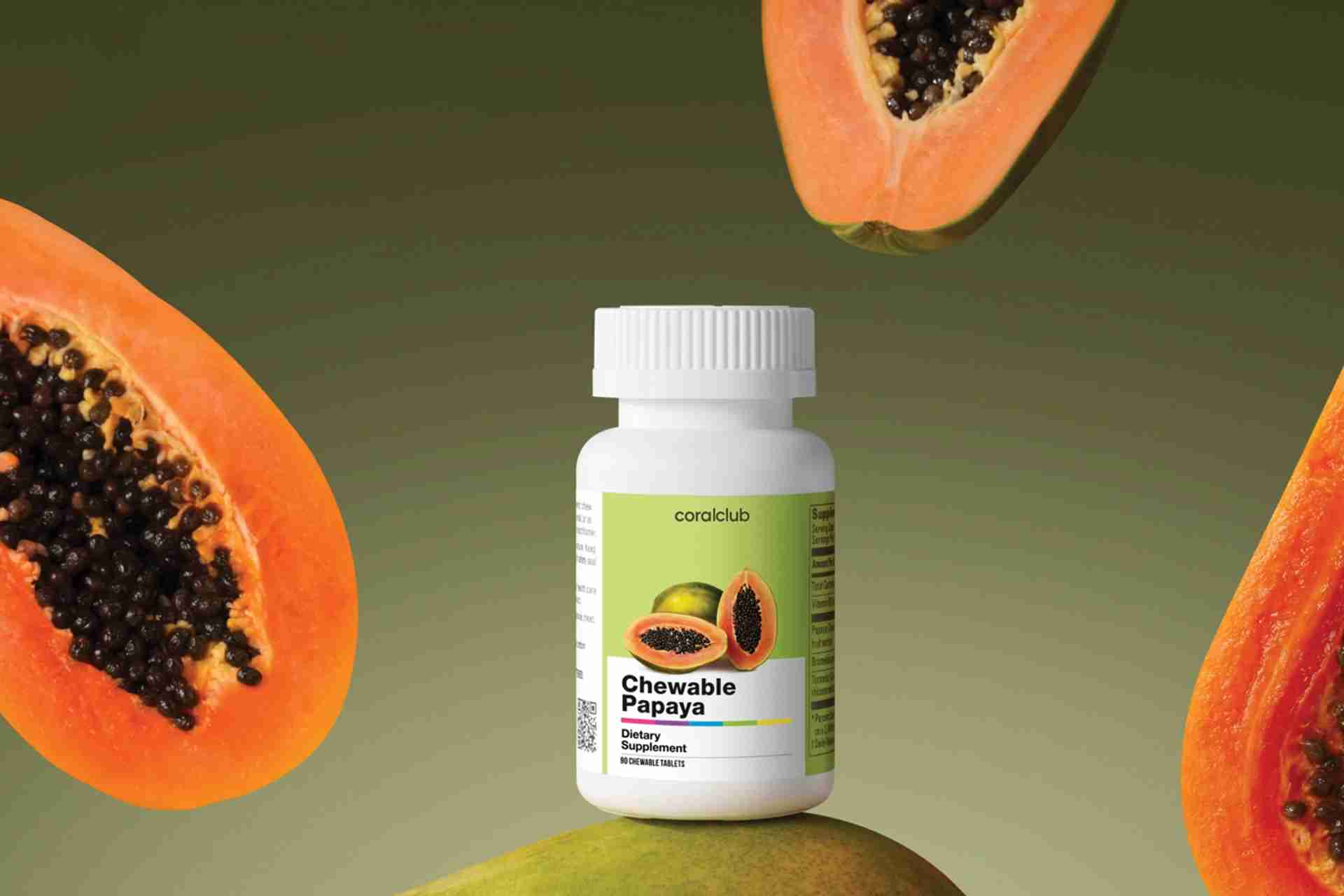 Сочная мякоть папайи содержит витамины, минералы и растительные ферменты, среди которых наибольшую ценность представляет папаин. Как и бромелайн, папаин относится к протеолитическим ферментам и улучшает переваривание и усвоение белковой пищи.