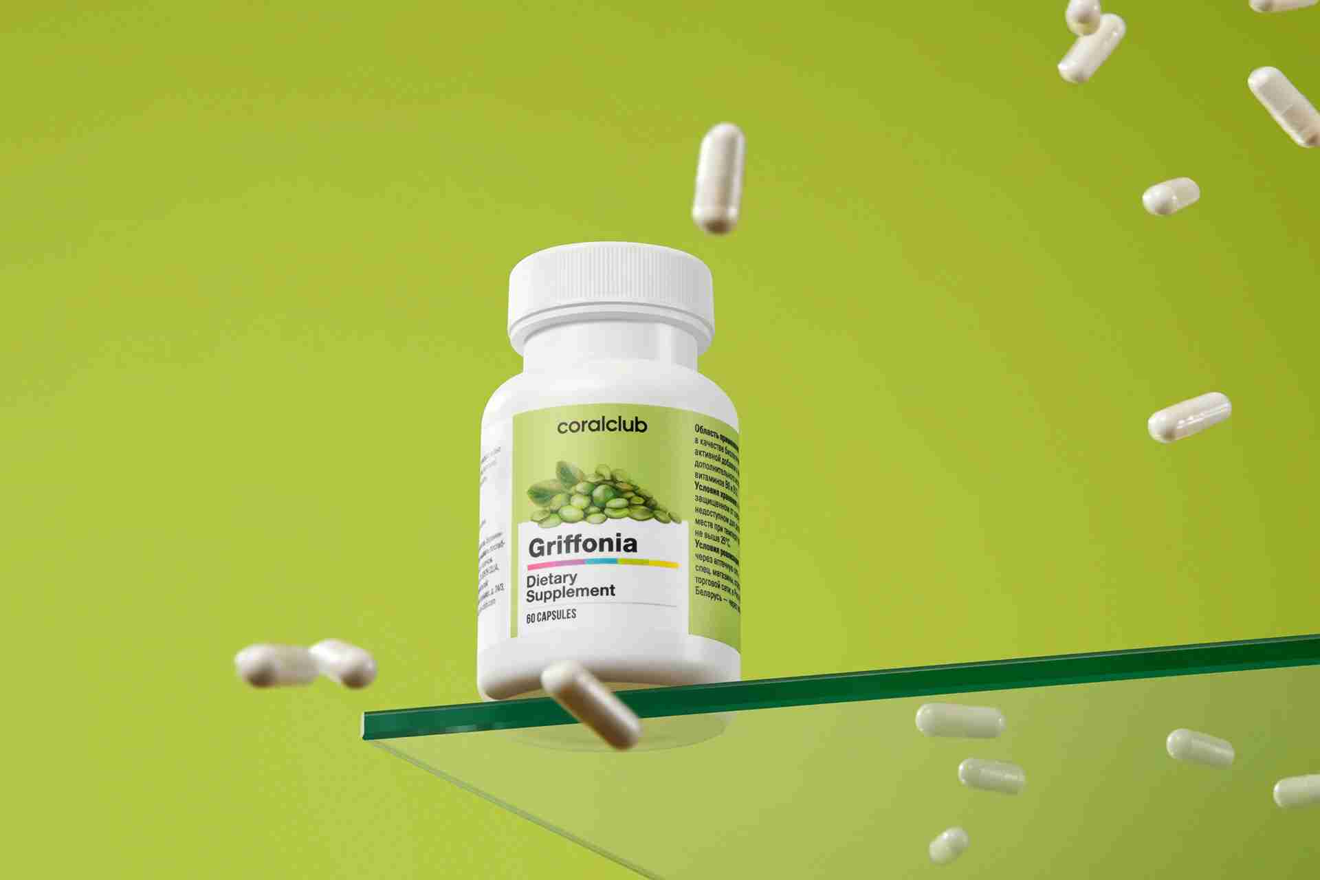 Экстракт семян гриффонии — источник аминокислоты — предшественника «гормона счастья» серотонина. В сочетании с витаминами В6 и В12 увеличивает синтез эндорфинов в головном мозге, нормализует эмоциональный фон, снижает чувство тревожности, облегчает процесс засыпания.